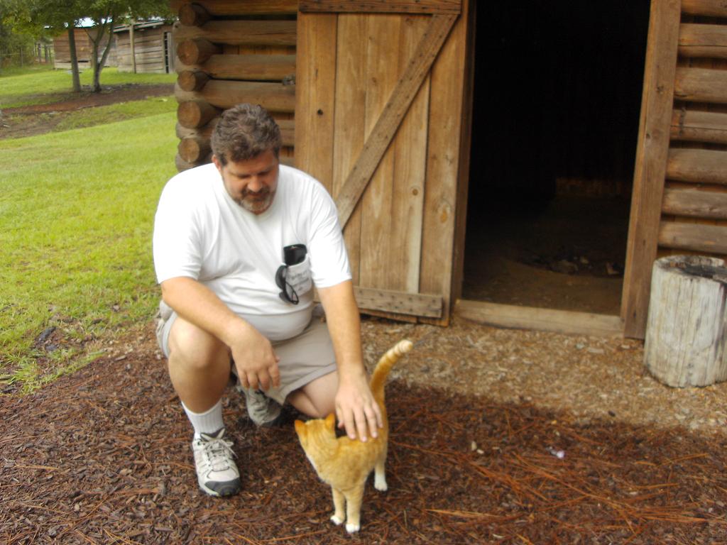 Our arrival at General Coffee State Park, Douglas GA. You'll notice we're in Ann's Miata, not on our motorcycles. My head gasket blew as we were leaving Ocala, about two hours into our trip. We got settled in, put supper in the oven and took a look around the park. Ann wanted to find the roosters, and we did, at the historic Georgia farm portion of the park.
