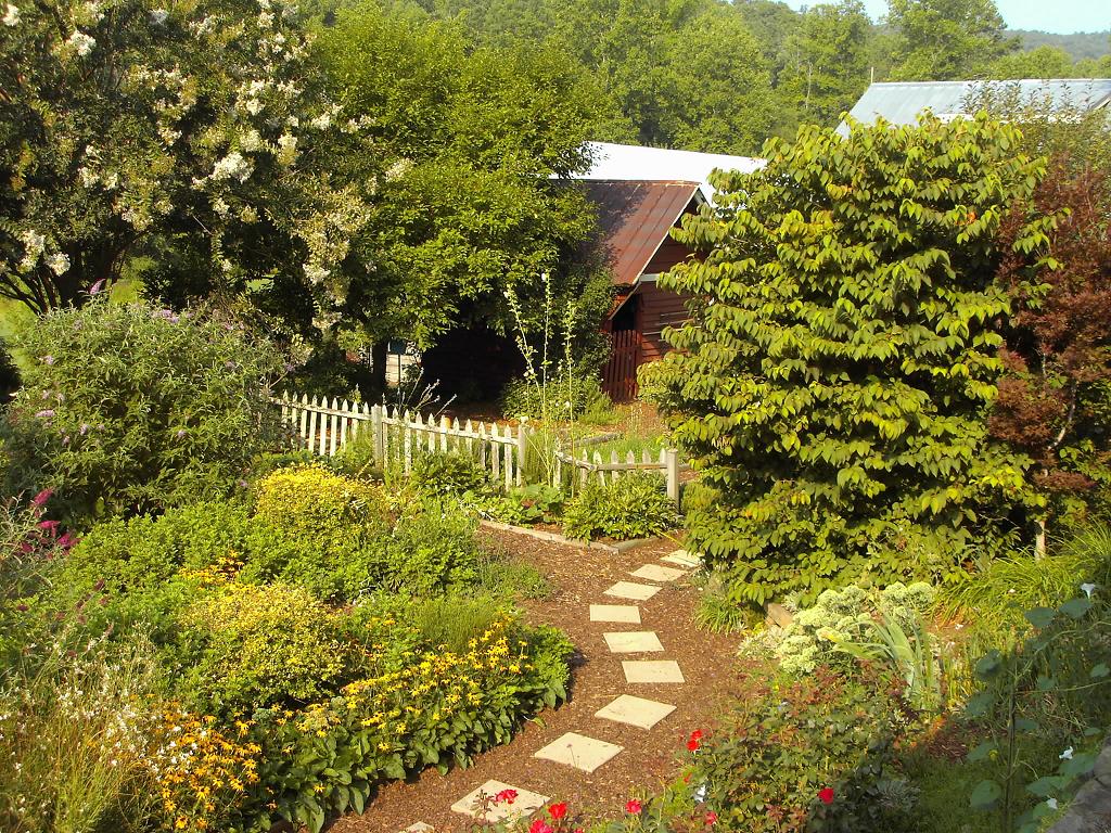 This is the view of the inn from the pasture looking through the gardens. We walked the grounds after dinner to get a feel for the layout. Ann is standing in the lower garden.