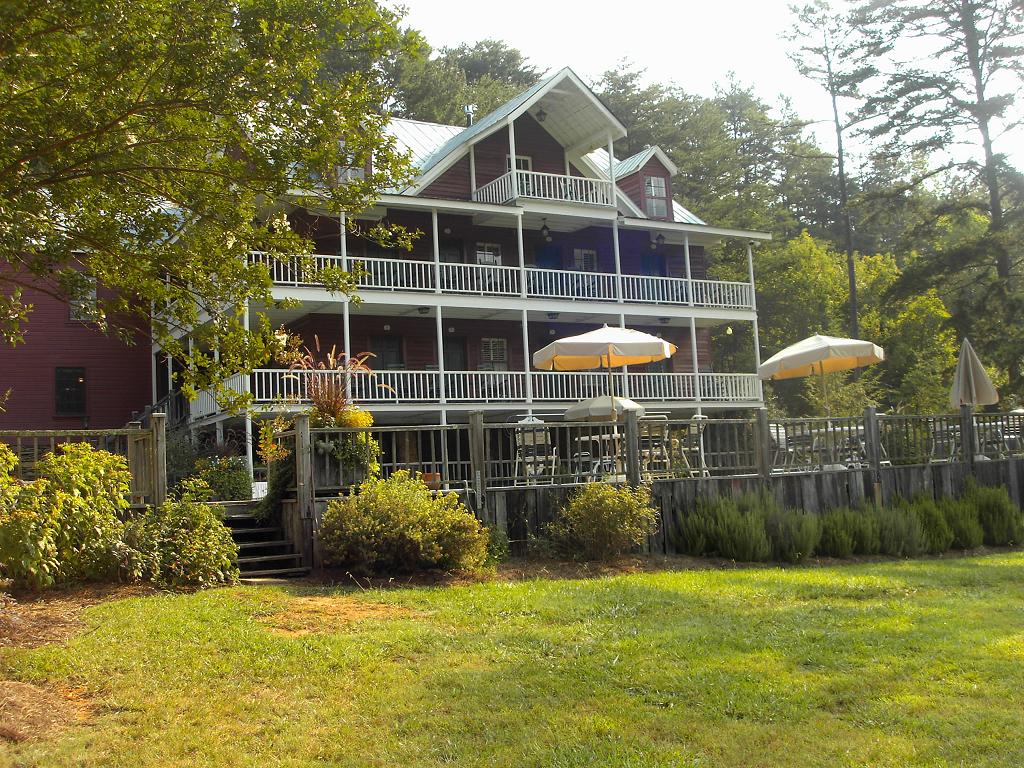I was pretty sure after the second 6 hour day of riding all we'd want to do is eat and sleep, maybe soaking in a hot tub (some rooms have one) first. Instead we decide to partake of the local Habersham County Chardonnay rather than travel all the way back into town for beer. As we sat there taking everything in, we noticed more than a dozen hummingbirds sharing, visiting and fighting over the feeders. We order another bottle of the Chardonnay and decide to just have our dinner there on the patio too.