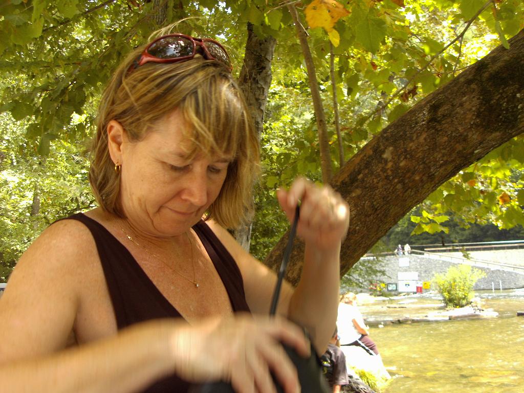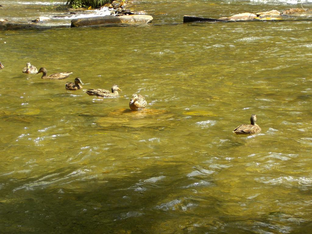 The Nantahala River is a controlled flow river, that is they open the flood gates upstream in the morning in anticipation of the whitewater crowd arriving. On the ride up we could actually see the flow increase from a trickle to a torrent. The ducks don't care, and neither do I. They float, and we're nagana find out if I do. Ann just wouldn't stand still long enough for me to get a good picture.