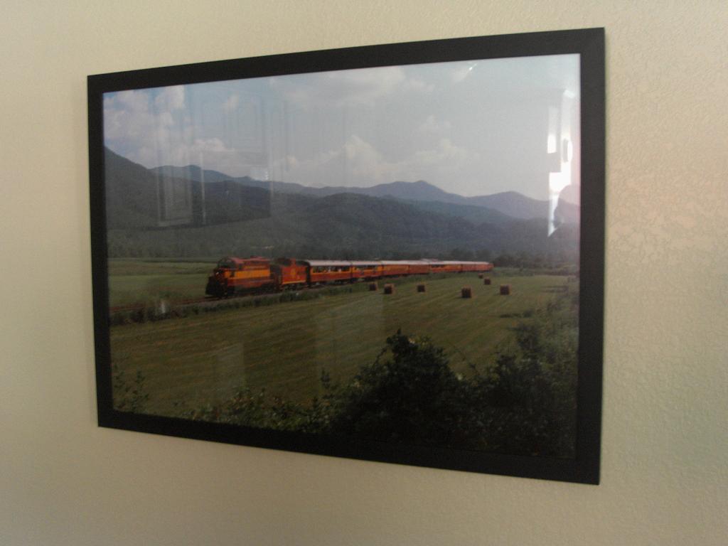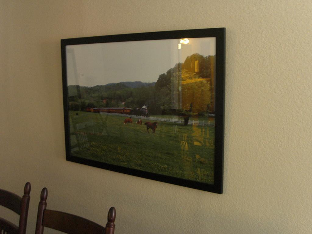 This place is HUGE! It sleeps 8 - 10, two bedrooms with two queen beds each, plus the couch and love seat. Great for a small party (although they do ask that management be informed if a party is planned). The pictures on the wall are of the train.