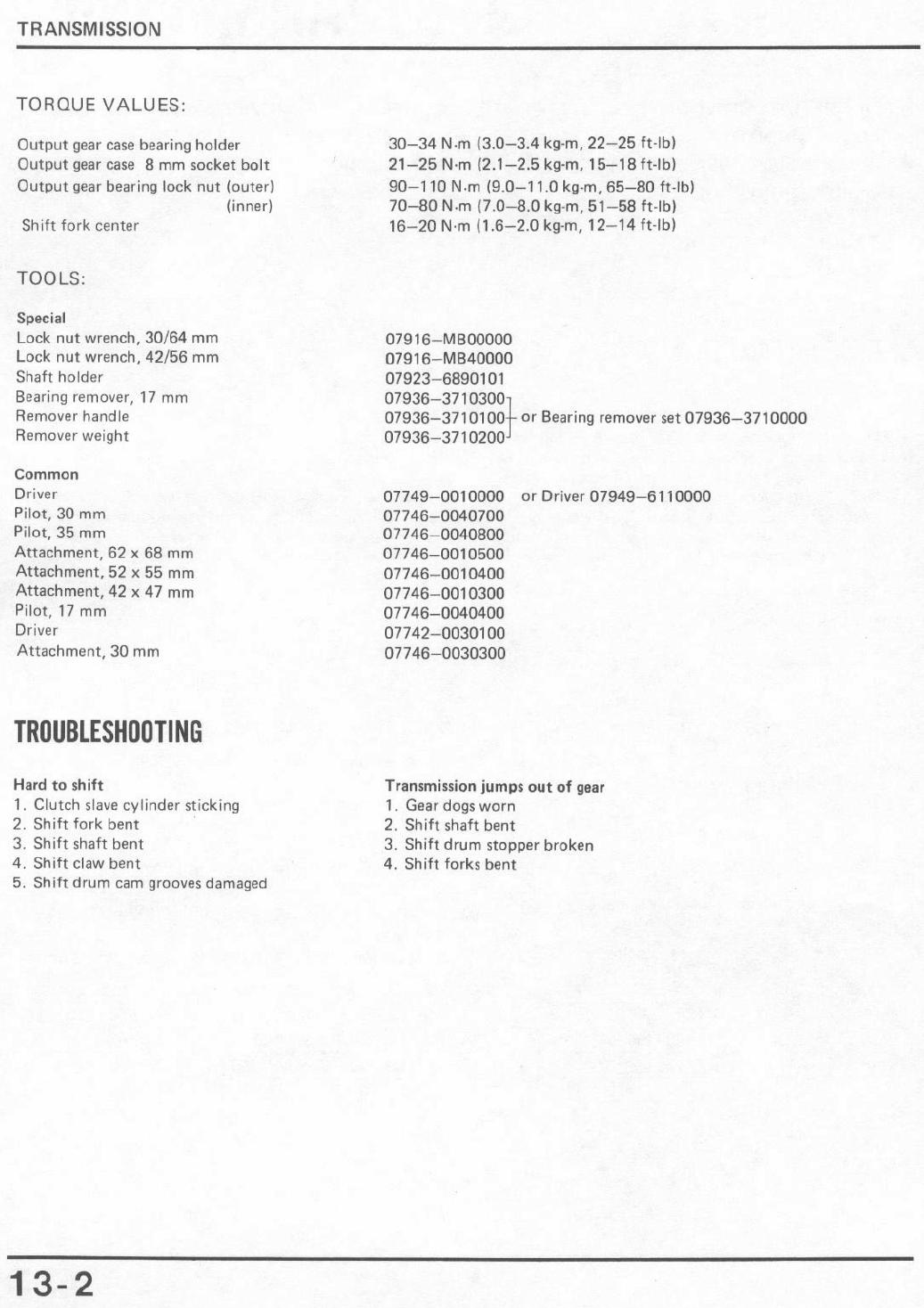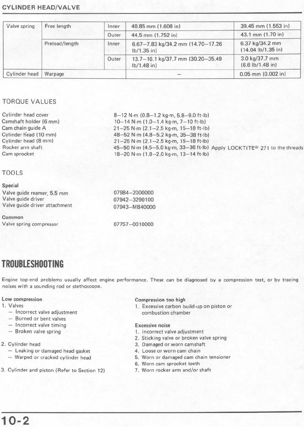 Torque Values (cont.)