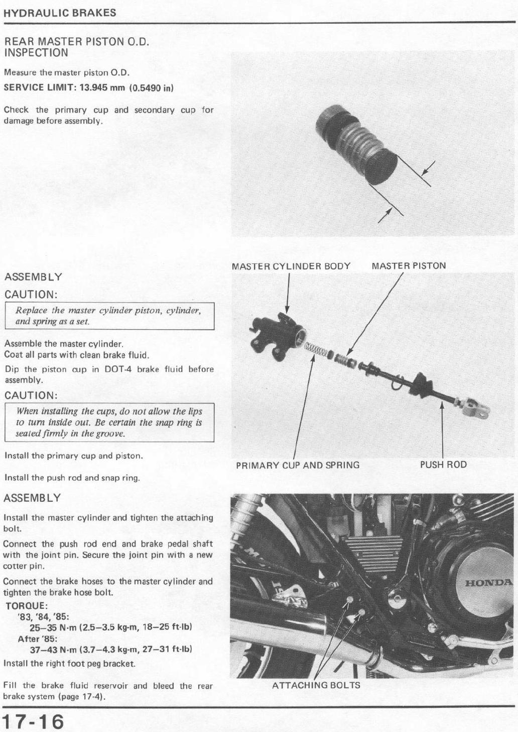 Rear Master Cylinder/Inspection/Assembly