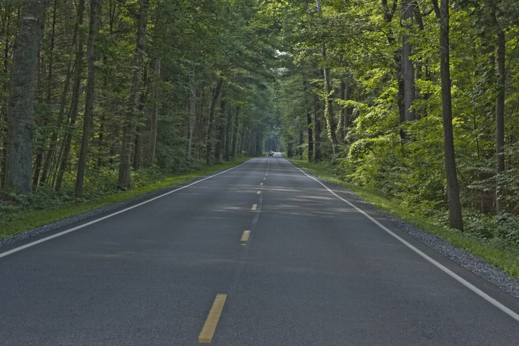 When we get back, we load the bikes back on the truck, then it's on to the meet. Jesse had us go out I-81 to Harrisonburg, VA to catch US 33 E to Elkins, WV. When we come to this wonderfully smooth and calming stetch of US 33 through the National Forest, we know why Jesse had us come this way, but it doesn't last long. The map says about four hours... NOT! Talk about a roller coaster ride! Signs read 9% grade next 5 miles, 8% grade next 7 miles, etc. I keep worrying the truck will go one way and the bikes another - now we really know what's in store for us... or so we think.