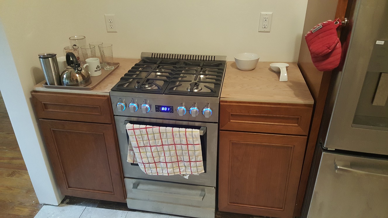 Having gone as far as we can on installing the cabinets for now, it's time to turn our attention to removing the remaining cabinets and rework the plumbing for the new sink. As it stands, the old sink with a garbage disposal is just tall enough to make it into the old metal drain line coming out of the wall. That's going to be a problem with the new sink since it's both deeper and undermount. A quick tally of the height of the drain compared to the new output height of the disposal says the water will need to flow uphill at least 5½"! And I have no idea what to expect until I get the old sink base out of the way and can get behind it to see. Plenty of other things to do until then though.